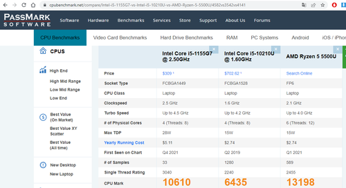 Na minha humilde opinião, entre os prós e contras, o único Pró deste note é a tela IPS, porém, processador de 10ª geração é fraco perto do i5 de 11ª geração, e do Ryzen 5500U. Mesmo tendo uma placa e video offboard, essa MX250 parece ser inferior a GPU integrada por exemplo do Ryzen.... Segue comparação/pontuação dos processadores