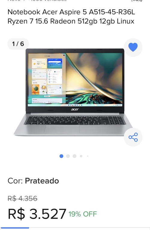 Notebook por agora está sem base. Sem condições. Final do ano passado esse notebook (na versão com 8gb de ram, 256gb de ssd) ficou por 1899. O aspire 5 anterior com r7, 8gb de ram, 512gb ssd chegou a ficar por 2k (eu cheguei a comprar nesse valor). Esse último chegou a disparar por 3k ~ 4k. Hoje teve "promoção" por 2639 o que ainda acho bem caro... O nitro 5 3050 no final do ano passado esteve por 2,5k ~ 3,5k. Está complicado.