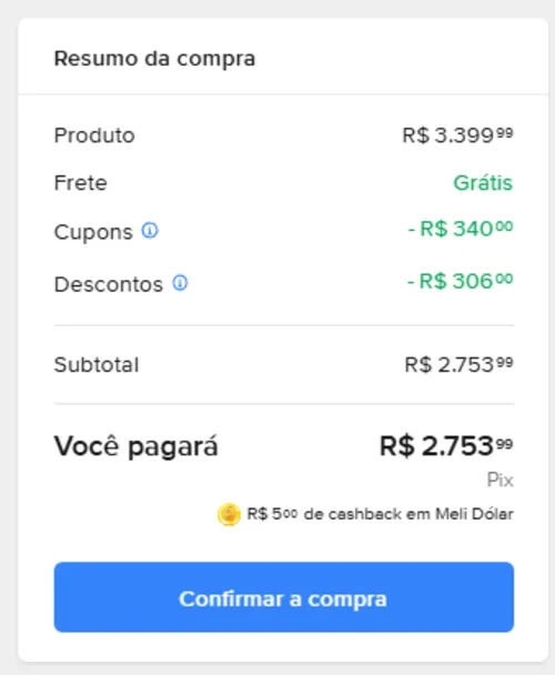 PRecinhooo para pagamento no PIX ou em até 18X de 170 no cartão Mercado Livre