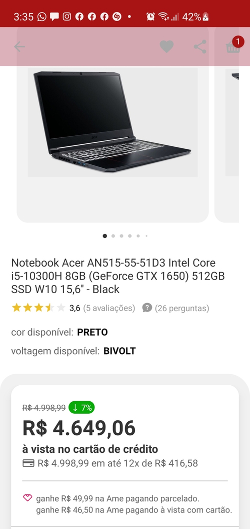 Peguei essa semana, 4600,00 parcelado com 250,00 de volta pelo ame