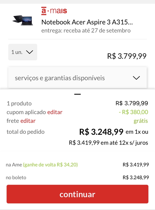 No site da asus fica 3800 esse notebook + notebook celeron. Acaba saindo mais vantajoso, podendo vender o celeron por uns 2k