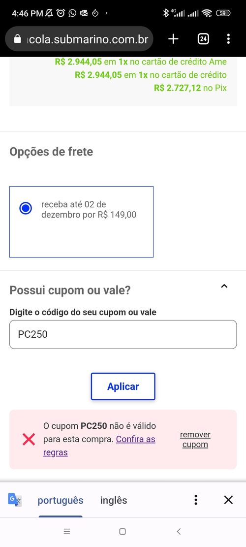 Cupom válido apenas para pagamentos via pix ou boleto bancário.