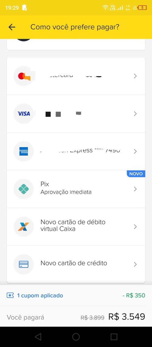 Como faz pra aplicar o cupom Santander? Escolhe a forma de pagamento e não entrou