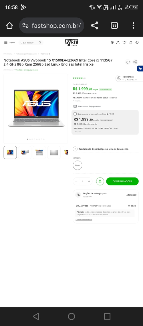 Na real, tem o i5 de 12 geração com quase o dobro de desempenho (em benchmark) que esse i5 de 11 geração por R$ 200tão a mais. Quem quer o valor mínimo possível, é esse. Quem quer longevidade, dá uma olhada no Asus postado há pouco, da Kabum - com processador i5 12450H