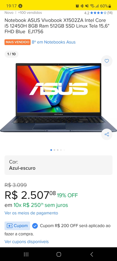 Enfim, tirando a tela e o Linux que vem nele (se fosse Ubuntu ou Fedora, estava ótimo), o resto é só alegria. Porém não sou muito parâmetro, pois estou saindo de outro Asus com I3 de 2ª geração, até uma raspibarry pi atual tem mais processamento.... kkkkkkk