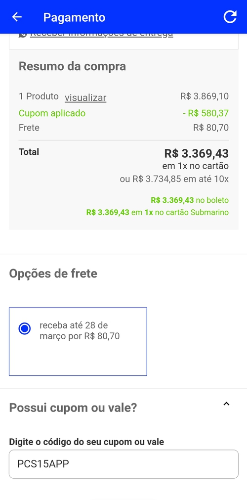Caso não estejam conseguindo o desconto pesquisem o modelo pelo o GOOGLE, salvem o link de lá.