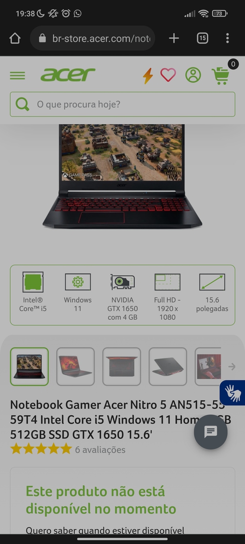 @MukRana Qdo simulei o preço final no AME ele não fica visível no site da Acer, o app do AME só abre qdo finaliza a compra. Nesse momento deve sair do estoque.