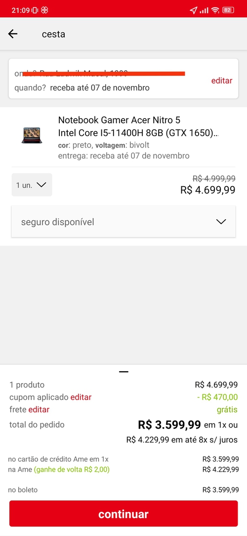 Que delicinha de preço.Estou querendo comprar o Notebook Gamer Acer NVIDIA GeForce GTX 1650 Core i7-11800H 8GB 512GB SSD Tela Full HD 15.6” Windows 11 Nitro 5 AN515-57-740K.