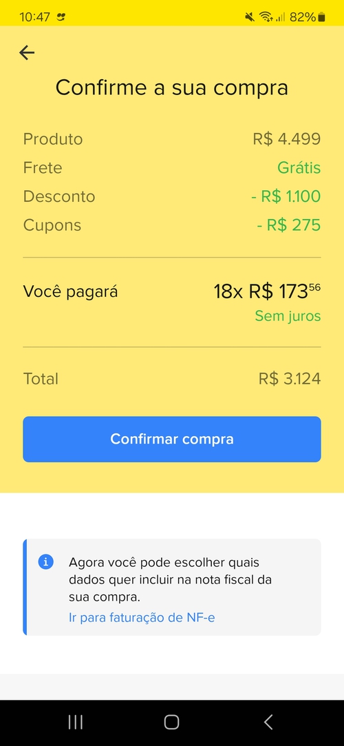 Comprei, parcelei em 18x e ainda ganhei 16 reais de cashback kkkkk