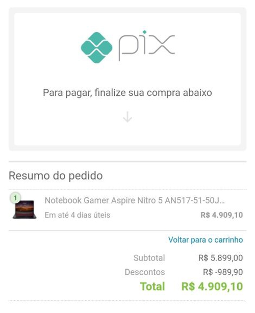 Notebook Gamer Aspire Nitro 5 AN517-51-50JS Intel Core I5 8GB 512GB | R$ 4909
