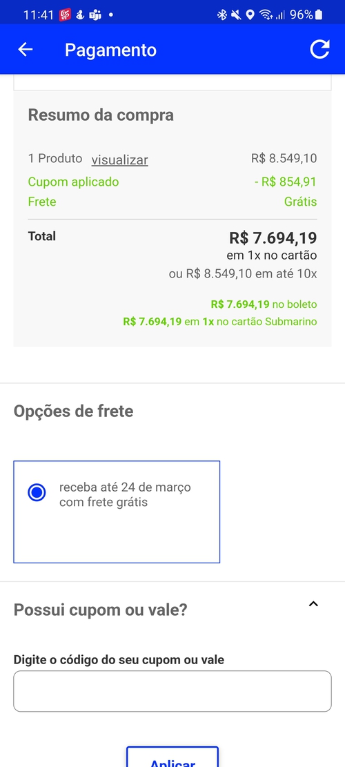 Além de ser somente pelo APP, esse valor é só a vista pelo cartão Submarino