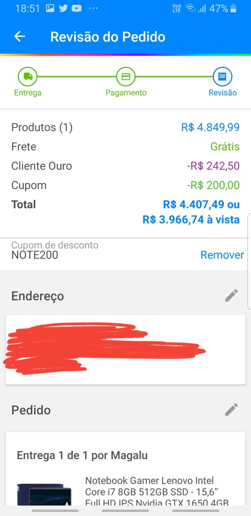 So no app valor a vista com cupom e cliente ouro
