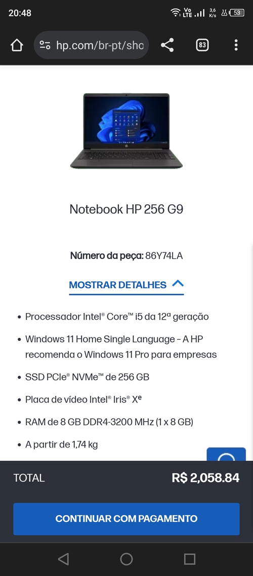 Notebook HP 256 G9 i5-1235U 8GB 256GB W11