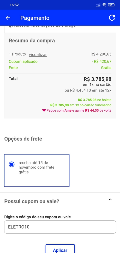 denovo não consigo aplicar o cupom pra chegar no valor... 💩