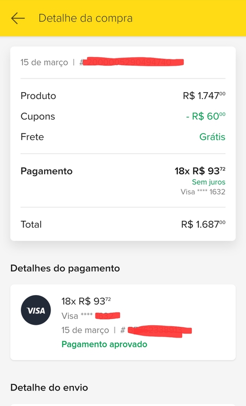 Tudo certo a1Alguem mais conseguiu esse cupom deles? Eu fiz a reclamação na quinta feira e ate agora nada. O valor final é parcelado no cartão ou a vista? porque no ml eu parcelei sem juros.