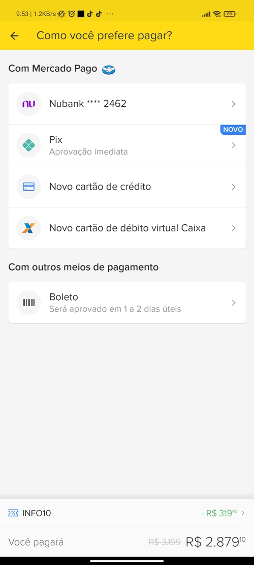 saindo 50 reais mais barato no mercado livre com cupom INFO10