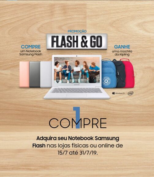 Compre até dia 31/07/2019 e ganhe uma mochila original Kipling ( Precisa resgatar a mochila no site da Samsung ) após a compra no dia 31 já está disponível o resgate e receba em casa.