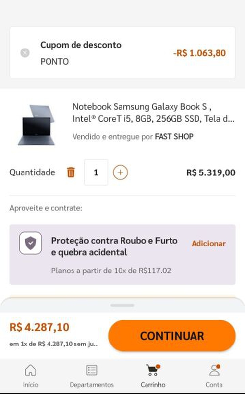Notebook Samsung Galaxy Book S , Intel® CoreT i5, 8GB, 256GB SSD, Tela de 13,3 Touch - NP767XCM-K01BR R$4287