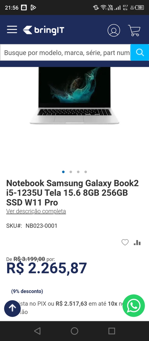 Acesse página dos notebooks, primeiro é o Galaxy Book2