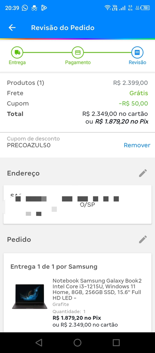 A diferença entre o a vista e o parcelado tá consideravel.