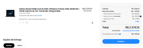 Peguei esse mesmo notebook, só que com 512 GB de SSD hoje no Samsung estudantes por R$ 2.339,10 no Pix.