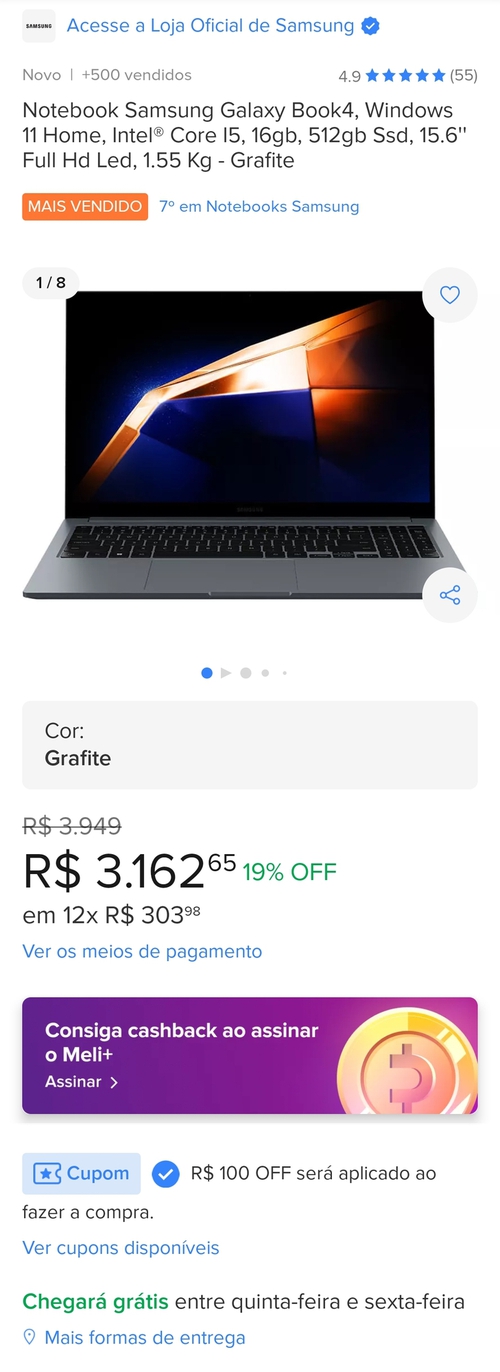Paguei 2663,21 na Magalu, com cash de 113 reais. Mas no pix.