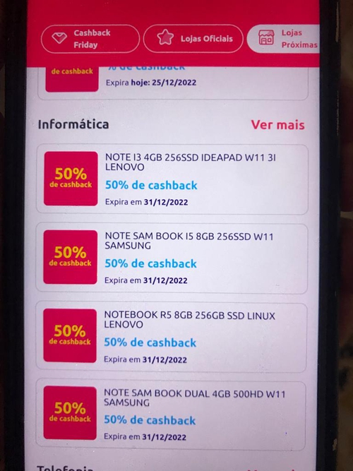 50% de ame, mas na loja o notebook custa o dobro do valor do site/app.