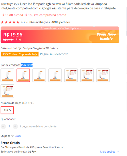 [Novo Usuário] Lâmpada LED Inteligente TUYA 15W