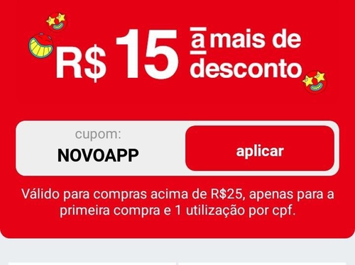 [Novos usuários] Cupom de R$15,00 em compras acima de R$25,00