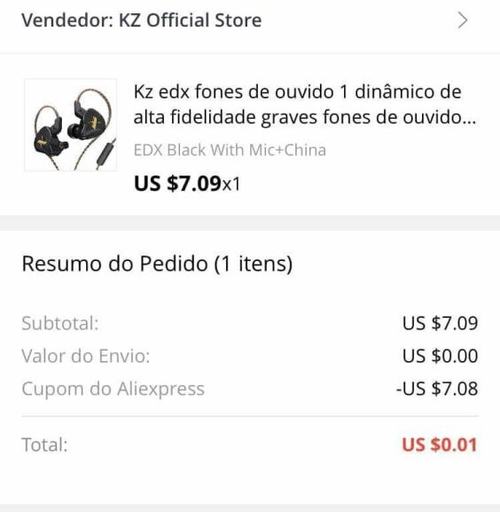 [NOVOS USUÁRIOS] Fone de ouvido in-ear KZ EDX | R$0,06