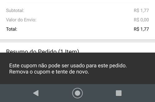 Aqui diz que não é possível utilizar esse cupom nessa compra.