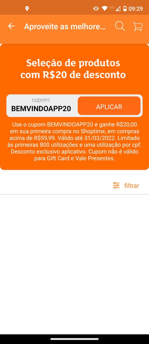 [NOVOS USUÁRIOS] R$20 OFF em compras acima de R$60 no App Shoptime