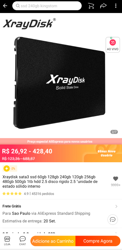 Como não da mais para comprar pelo navegador, comprei o kingspec de 120gb pelo aplicativo. Agora é aguardar 24hrs, pagar o boleto e torcer para dar certo. Esses chineses estão complicando ainda mais para nós "novos usuários"...