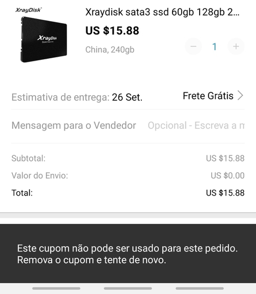 Aqui diz que o cupom não pode ser usado para essa compra, pra remover o cupom e tentar novamente :/