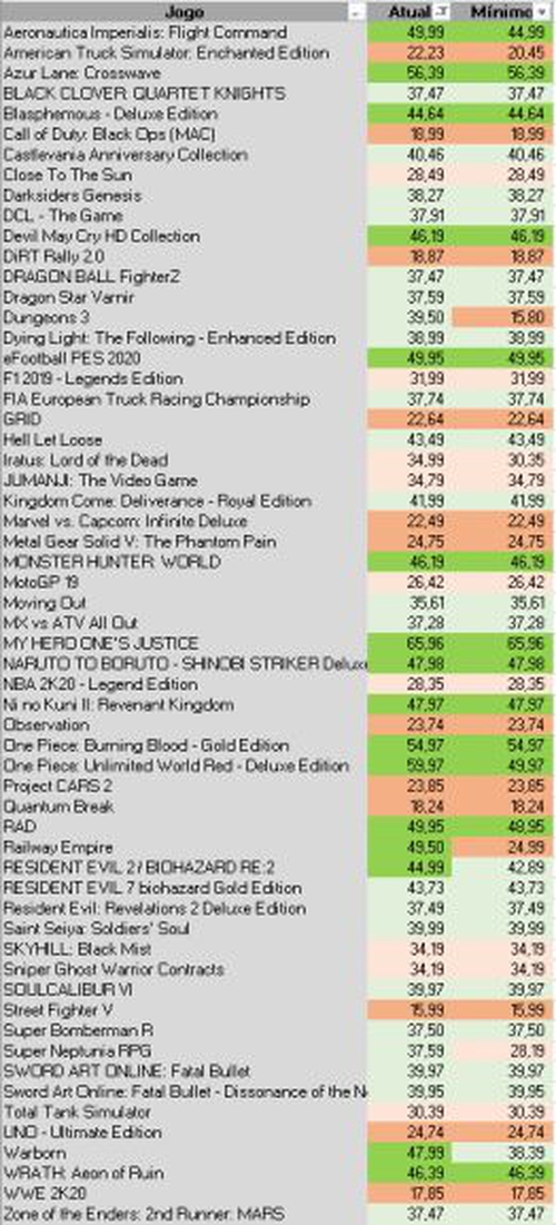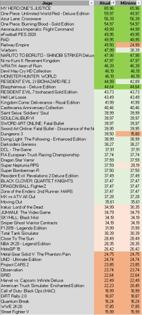 3ª - Jogos listados do mais caro para os mais baratos, valores MÍNIMOS na Steam