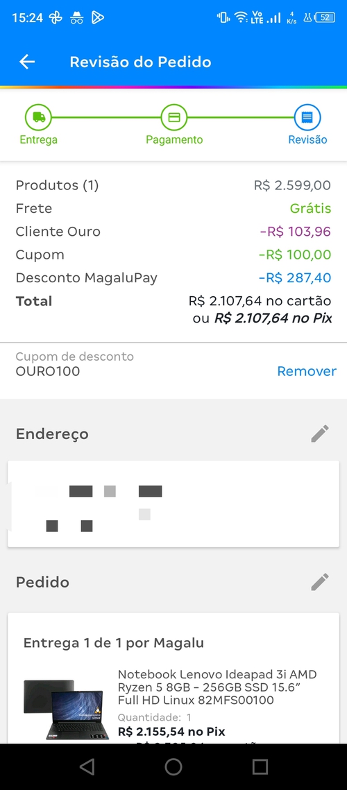(Ouro/ Magalupay)Notebook Lenovo Ideapad 3i Ryzen 5 5500u 8GB 256GB