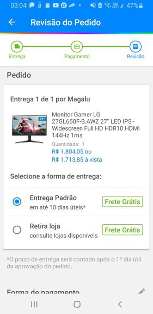 Pessoal gosta mais desse aqui, por ele ter cabo displayport incluso e HDR10. O lugar para o cupom eu só consegui via aplicativo do magalu