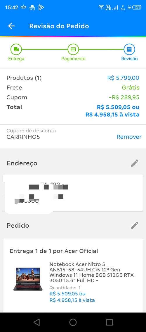 (OURO)Notebook Acer Nitro 5 Core i5 12ª Gen W 11 RTX 3050 8GB 512GB 15.6