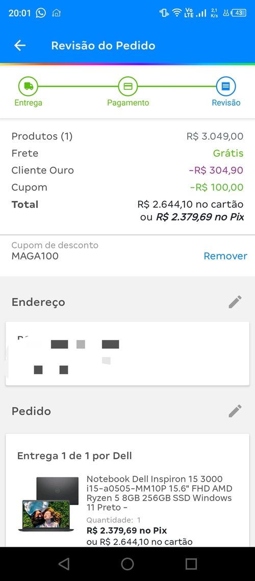 (OURO)Notebook Dell Inspiron Ryzen 5 5500u 8GB 256GB Windows 11 15,6 WVA