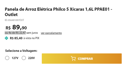 [Outlet] Panela de Arroz Elétrica Philco 5 Xícaras 1,6L PPAE01