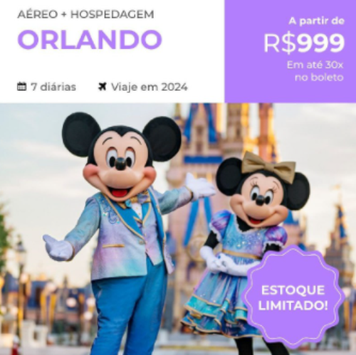 OFERTA SURPRESA! ORLANDO 2024 A partir de ➜ R$ 999,00 + taxa Aéreo 7 Diárias