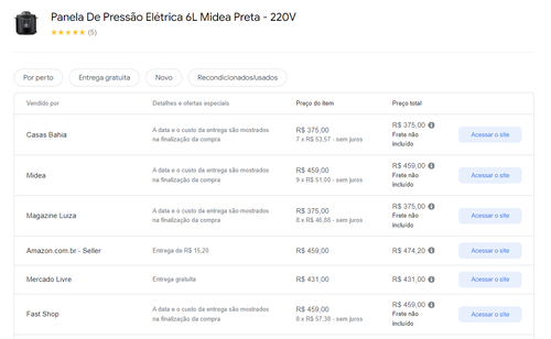 - Preço mais baixo conforme Google Shopping