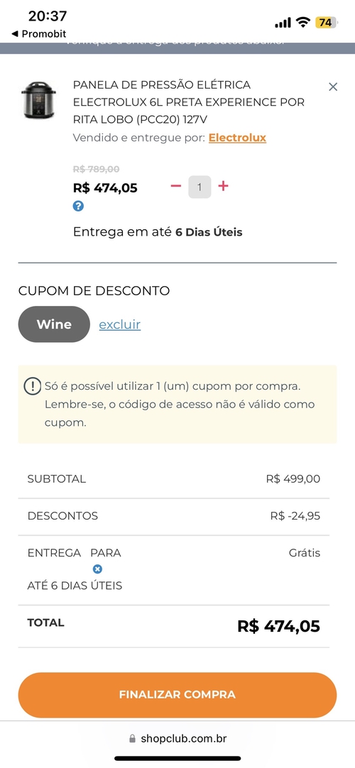 O ShopClub é o clube de compras oficial da marca Electrolux. Lembrando que todas as lojas que aparecem aqui no Pelando passam antes pela avaliação. Não precisa se preocupar :) Por ser um clube de compras, é preciso usar um código no primeiro acesso ao ShopClub. Use o código QUEROSHOPCLUB