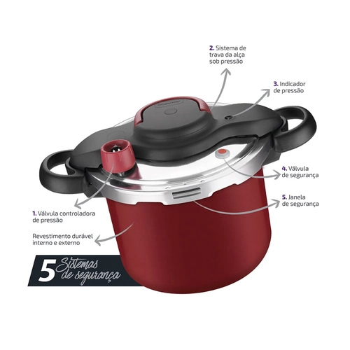 Panela de Pressão Rochedo Clipso Revestida Vermelha - com fechamento externo 4,5 litros