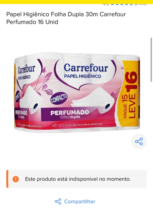 Papel Higiênico Folha Dupla 30m Carrefour Perfumado 16 Unid