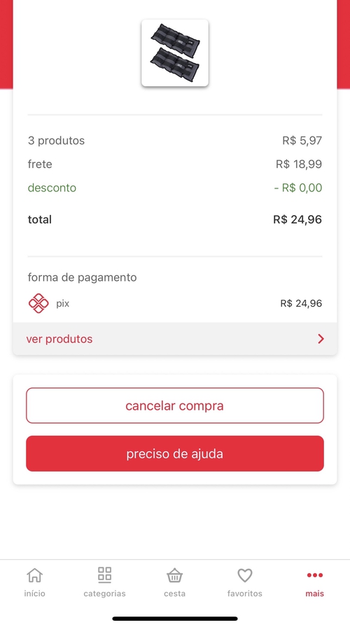 Aqui o frete ficou 36,99