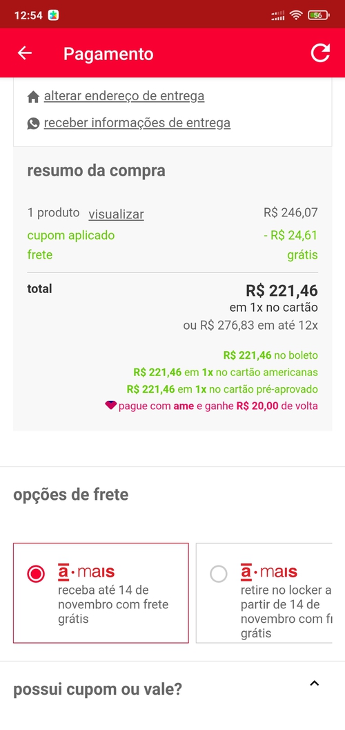 Acabei de pegar e ficou mais barato ainda. Com Ame ficou 201,46. Fui pelo App