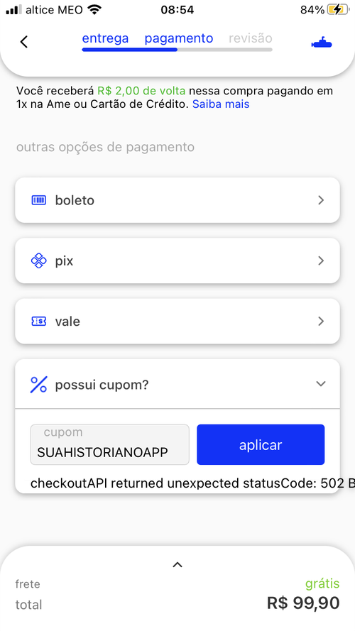 Se escolho a opção de R$ 169,90 diz que é inválido para esta compra.