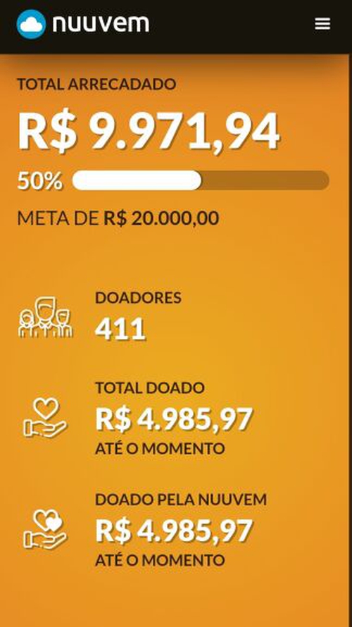 3- A cada R$1 que você doar, a Nuuvem também doará R$1!