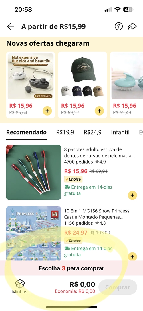 Para comprar com frete grátis e nesse valor, precisa adicionar 3 produtos selecionados, limitado a 10 itens.